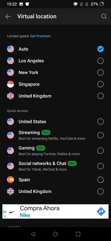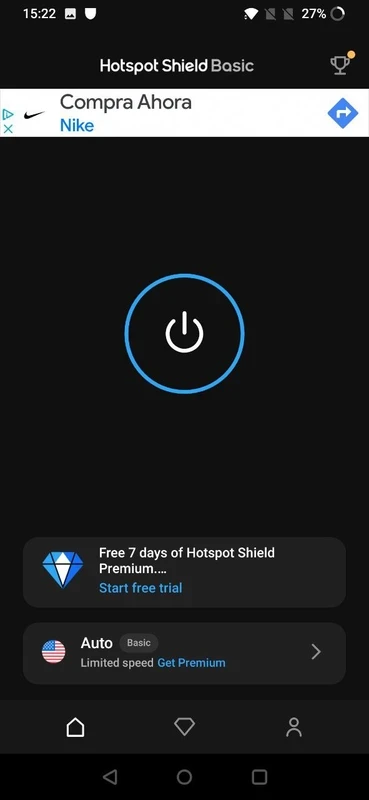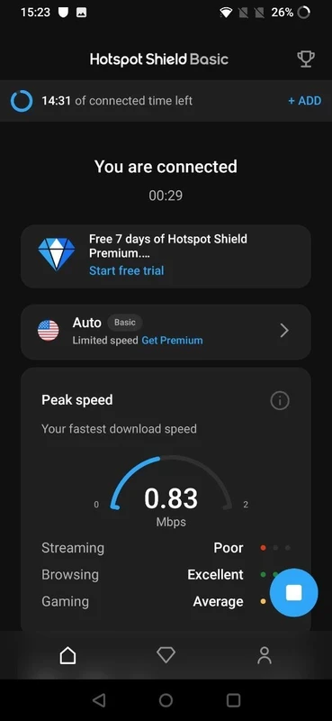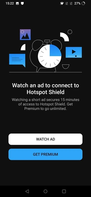 It is one of the key features that allows you to virtually present in the region that you desire. But keep in mind, the free version only connects you with the “US server” automatically, and also at a limited speed. For navigating to other robust servers, you have to tap the power button given on the main screen to select the advertisement or premium version. It offers an advertisement for 15 minutes of connection time, or enhances the connection time while watching more advertisements.